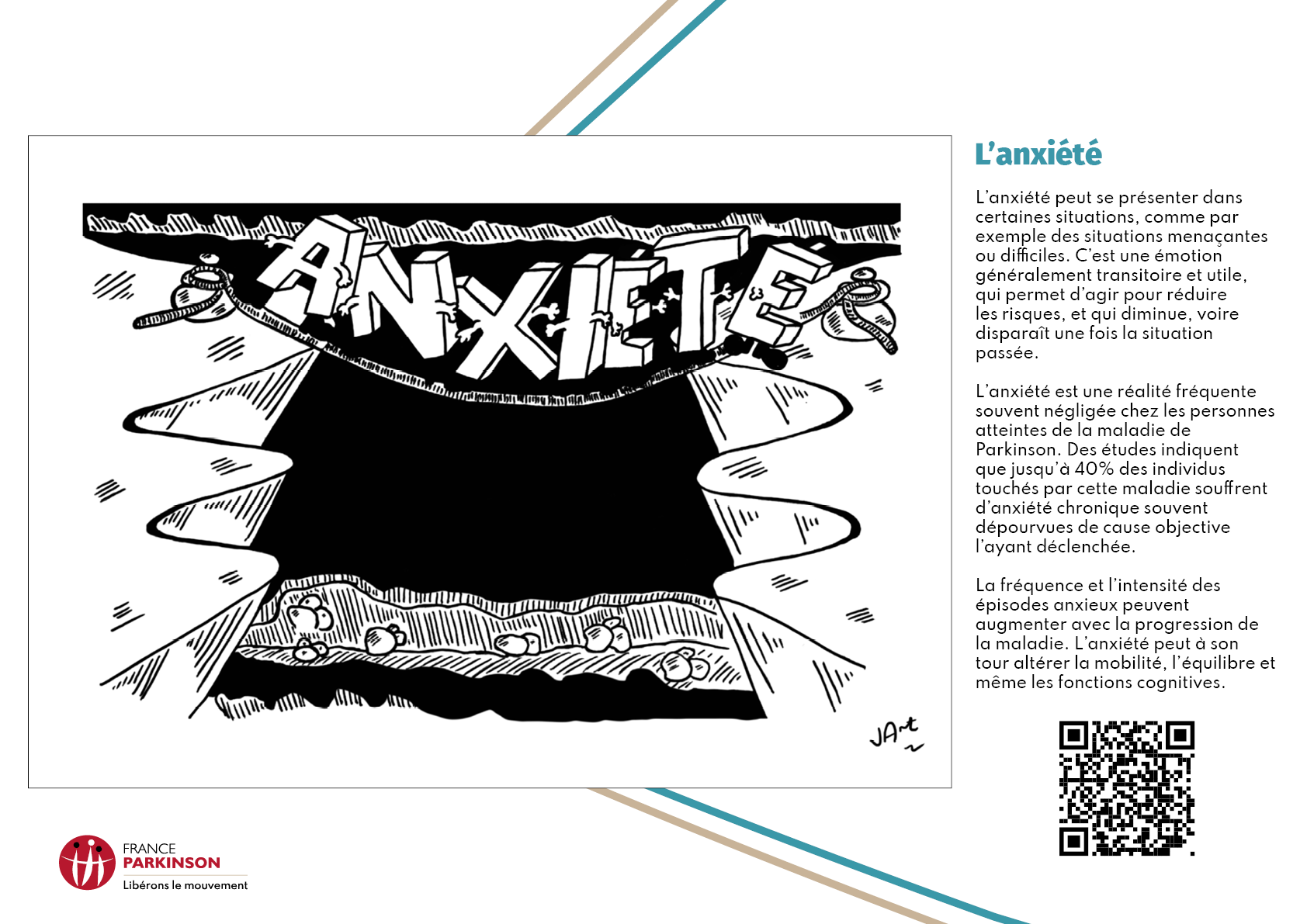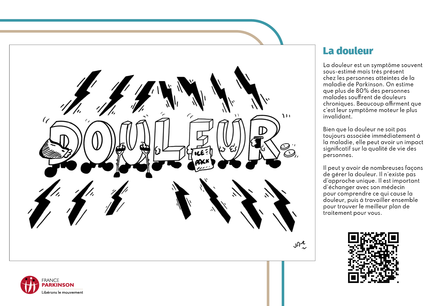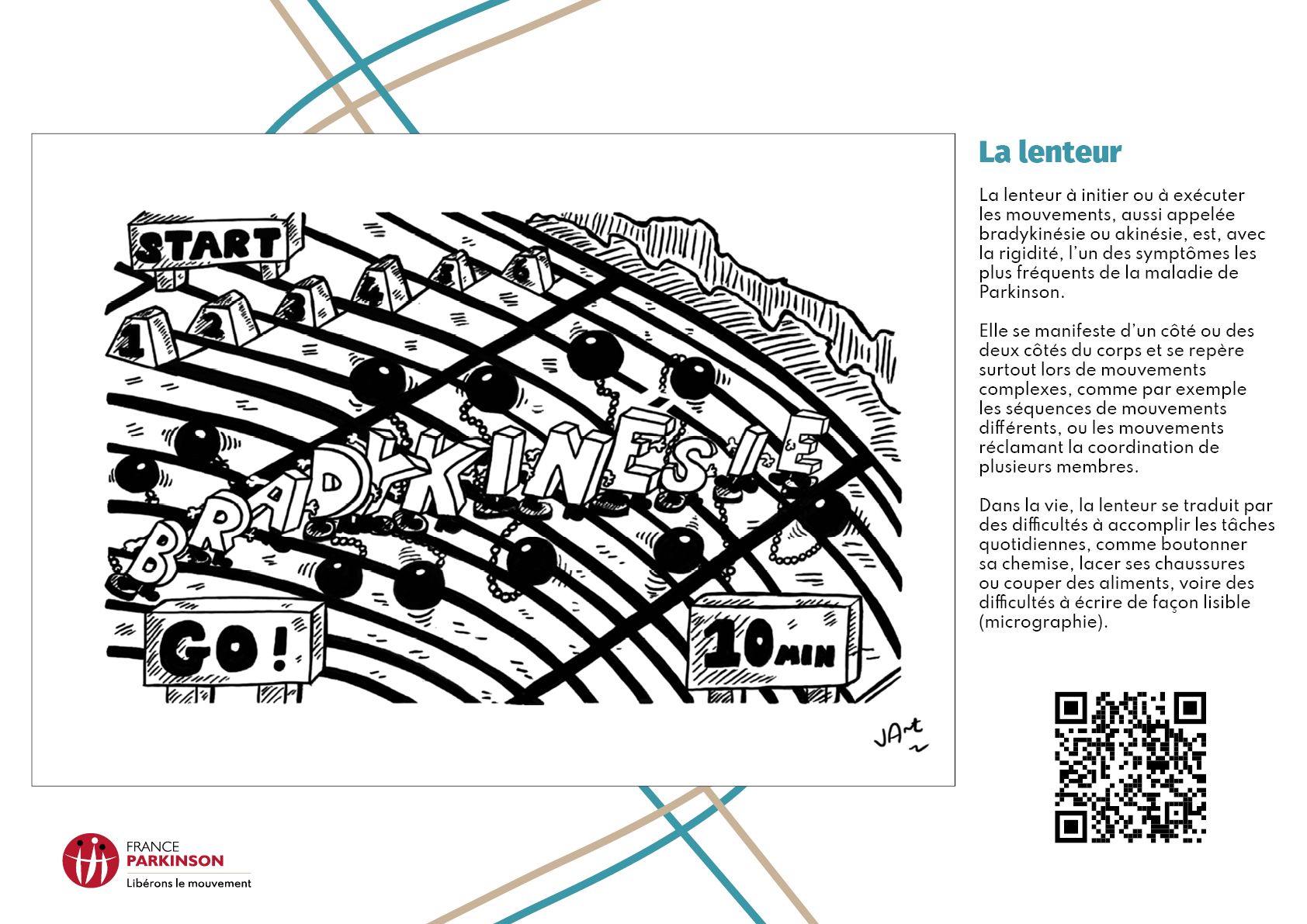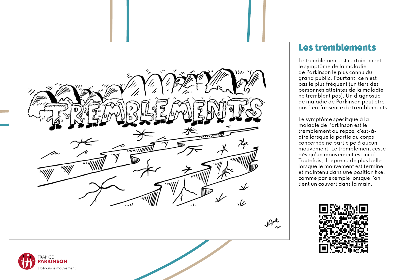 - d’un QR Code qui renvoie à la page du symptôme sur le site France Parkinson – page internet qui contient les vidéos témoignages