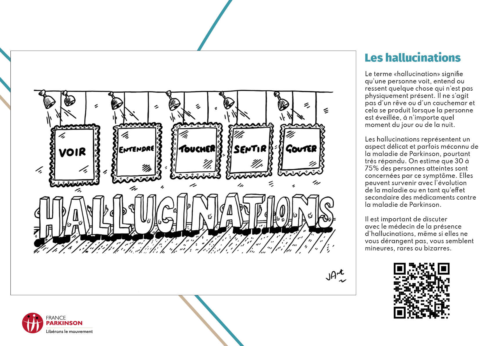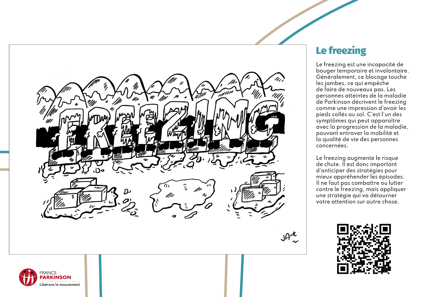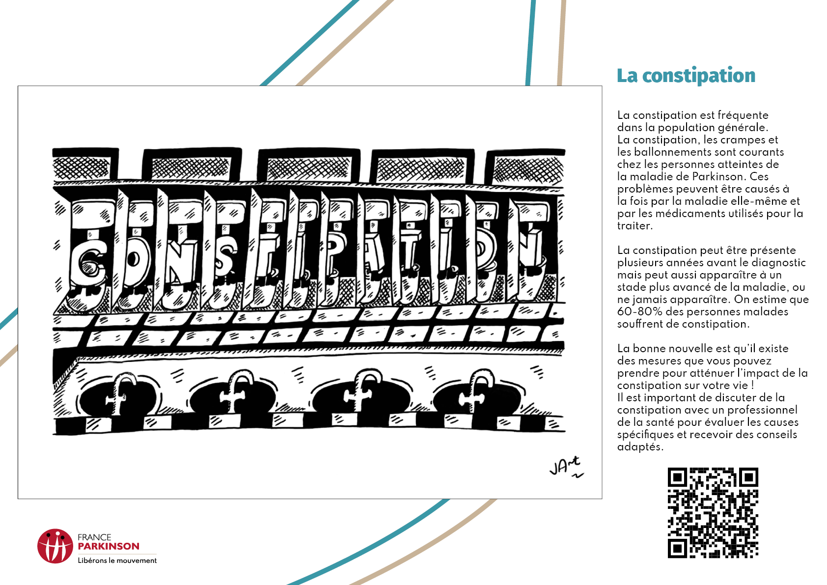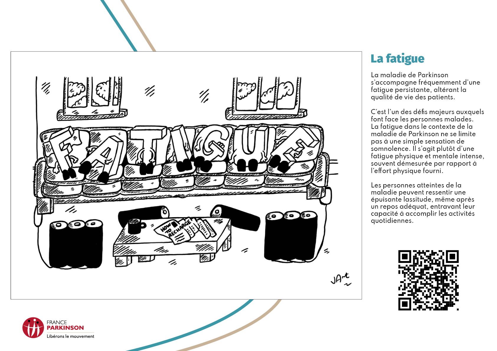 - d’un QR Code qui renvoie à la page du symptôme sur le site France Parkinson – page internet qui contient les vidéos témoignages