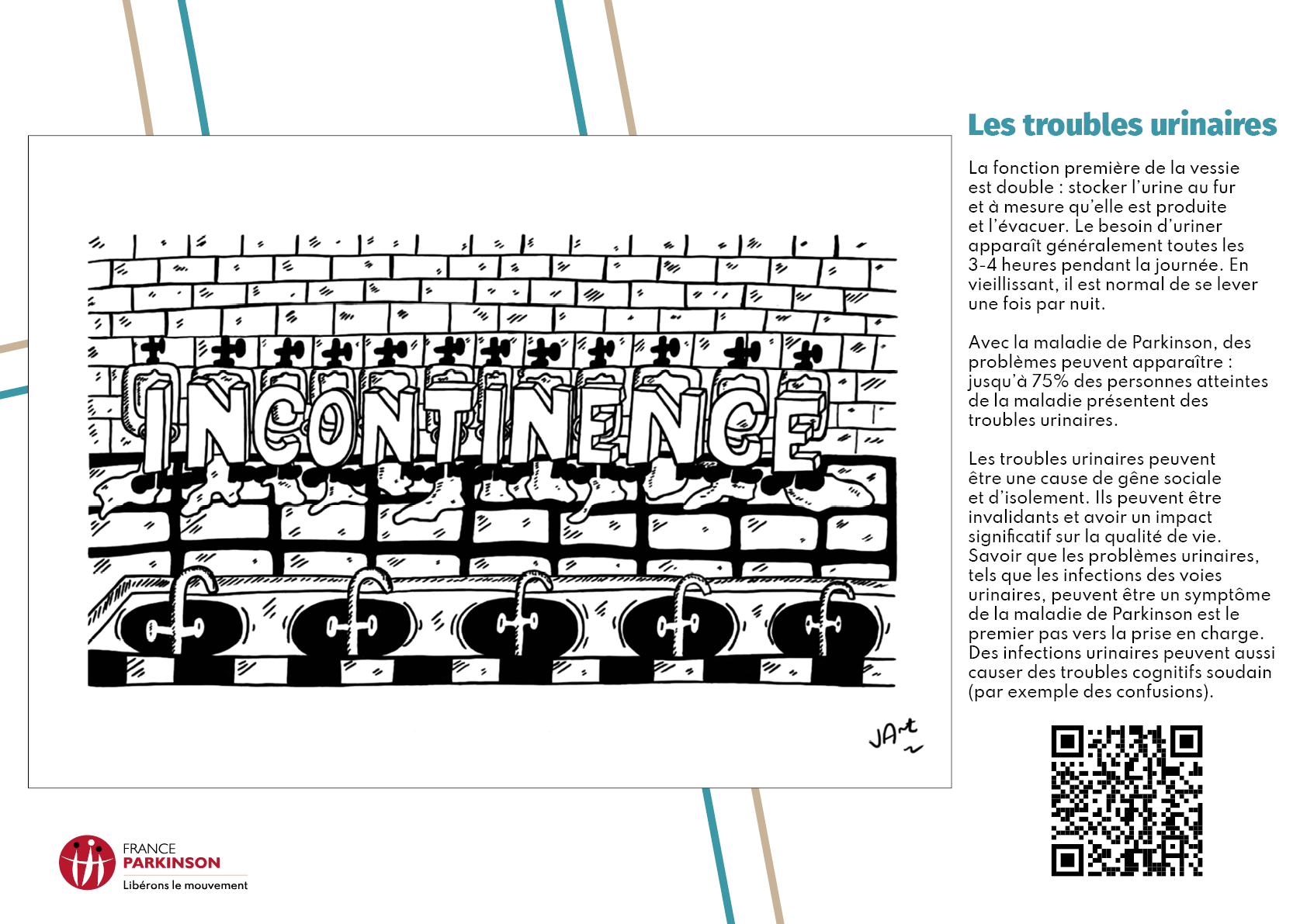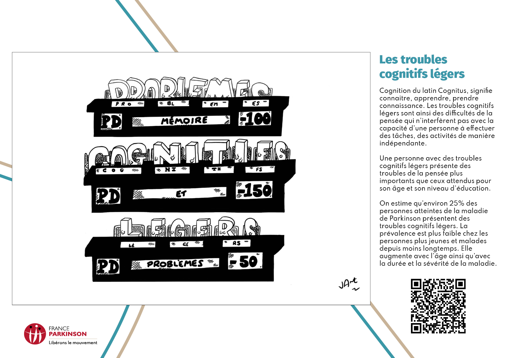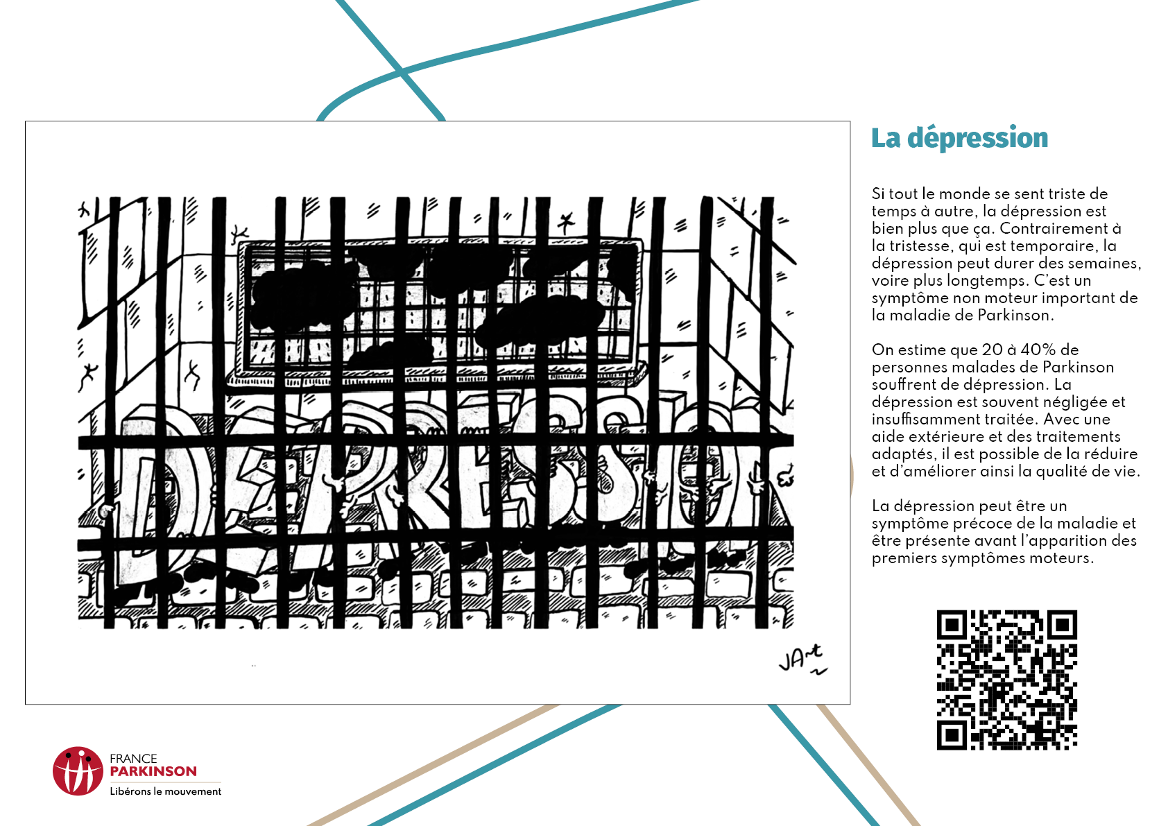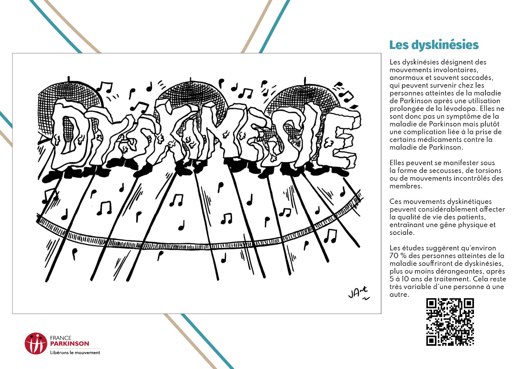 - d’un QR Code qui renvoie à la page du symptôme sur le site France Parkinson – page internet qui contient les vidéos témoignages