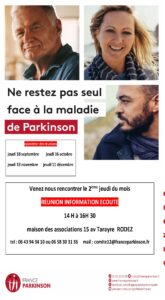L’équipe du Comité de l’Aveyron est là pour vous accueillir, vous écouter et vous apporter toutes les informations dont vous avez besoin pour vivre au mieux avec la maladie de Parkinson.