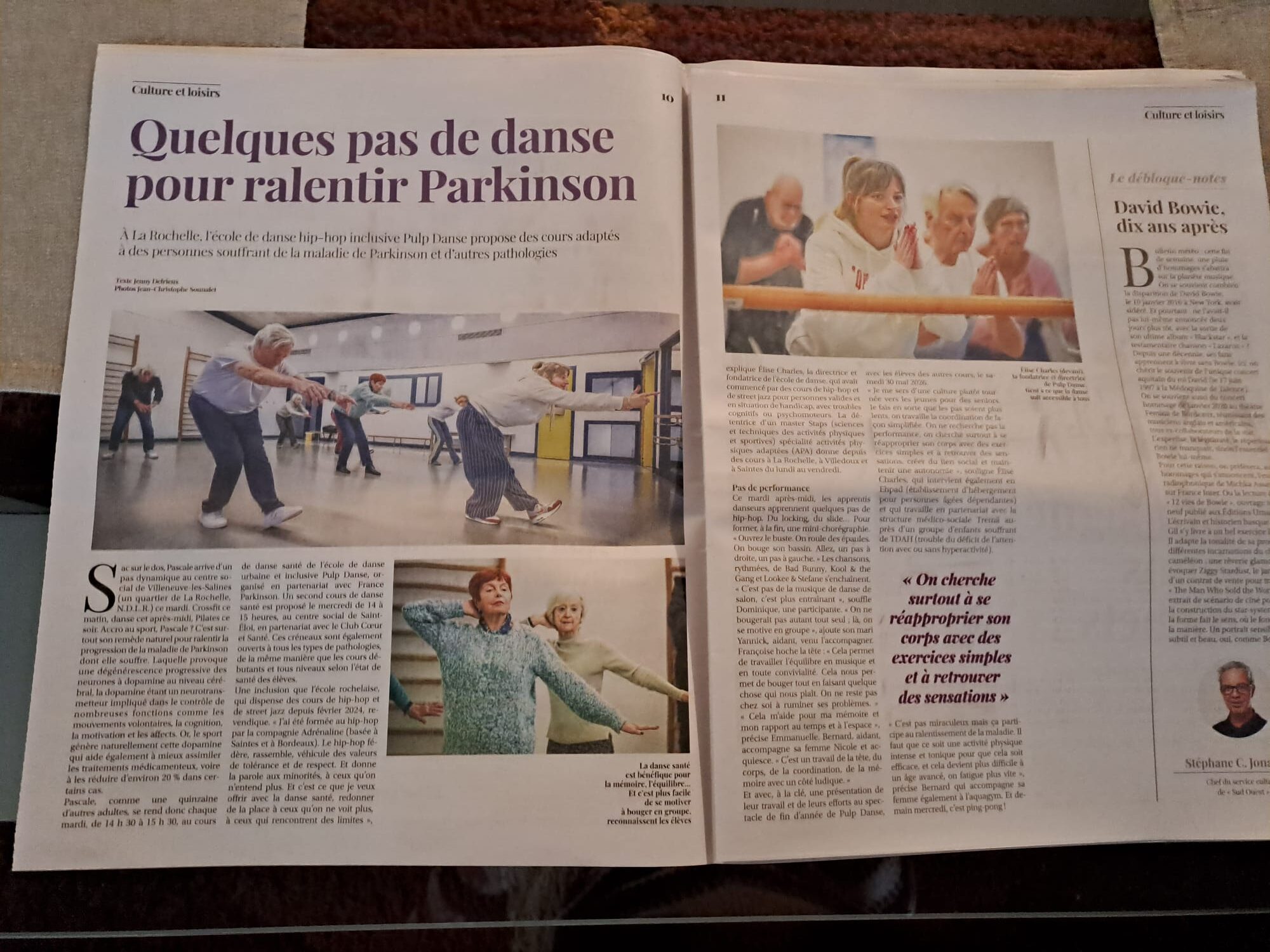 Dans l’édition de La Rochelle, ce même jour, paraît un article sur les bienfaits de la danse chez les personnes atteintes de Parkinson