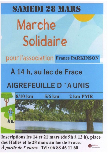 Notre association France Parkinson de Charente Maritime organise une marche à Aigrefeuille. Différents parcours sont prévus pour tous les marcheurs !