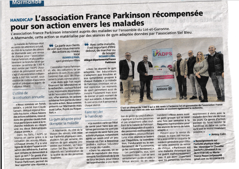 « L’association France Parkinson récompensée pour son action envers les malades »