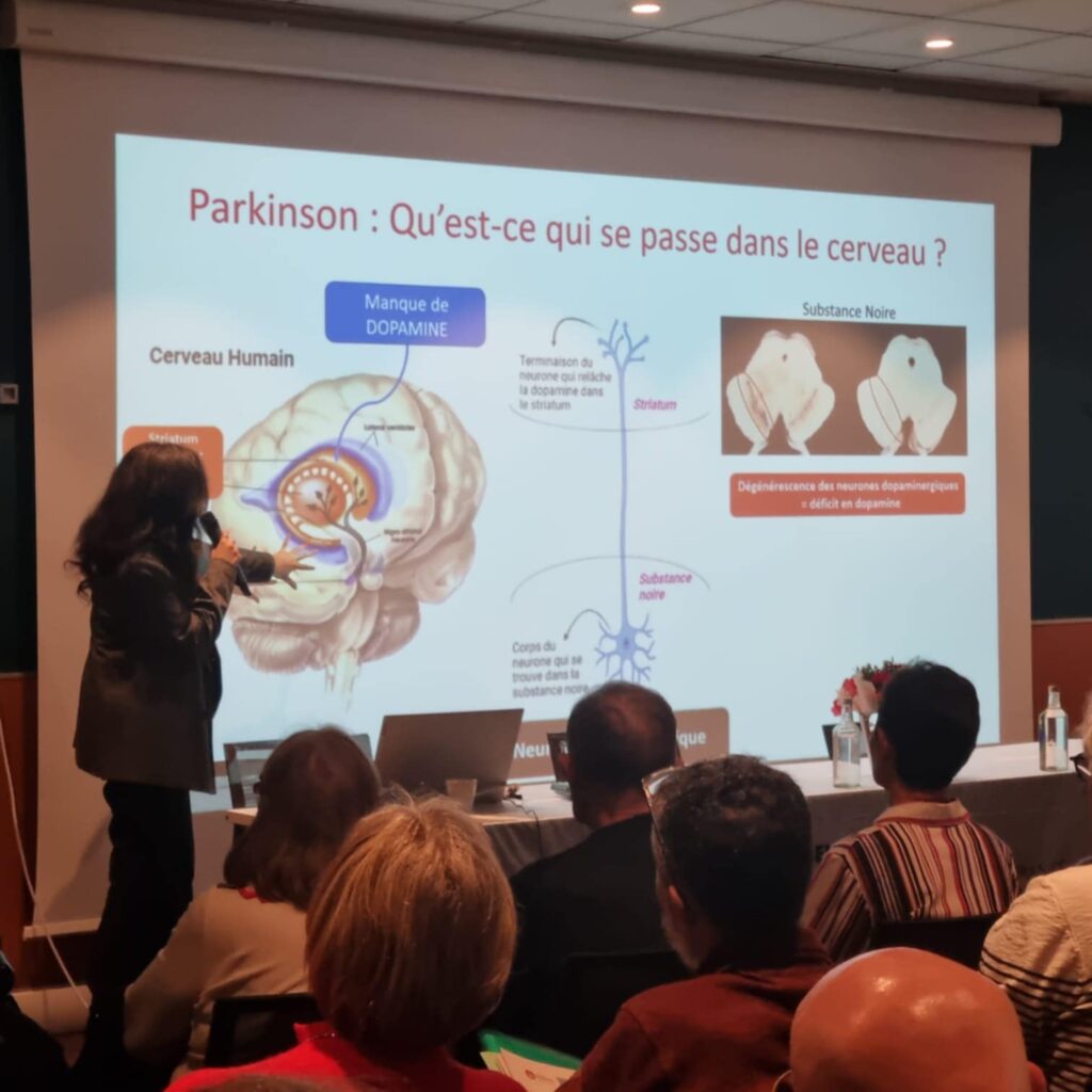 Les participants ont bénéficié des éclairages du neurologue Dr. FRISMAND sur la prise en charge médicale et les traitements, ainsi que de la présentation de Shirine KATRIB (France Parkinson Paris) sur les avancées de la recherche.