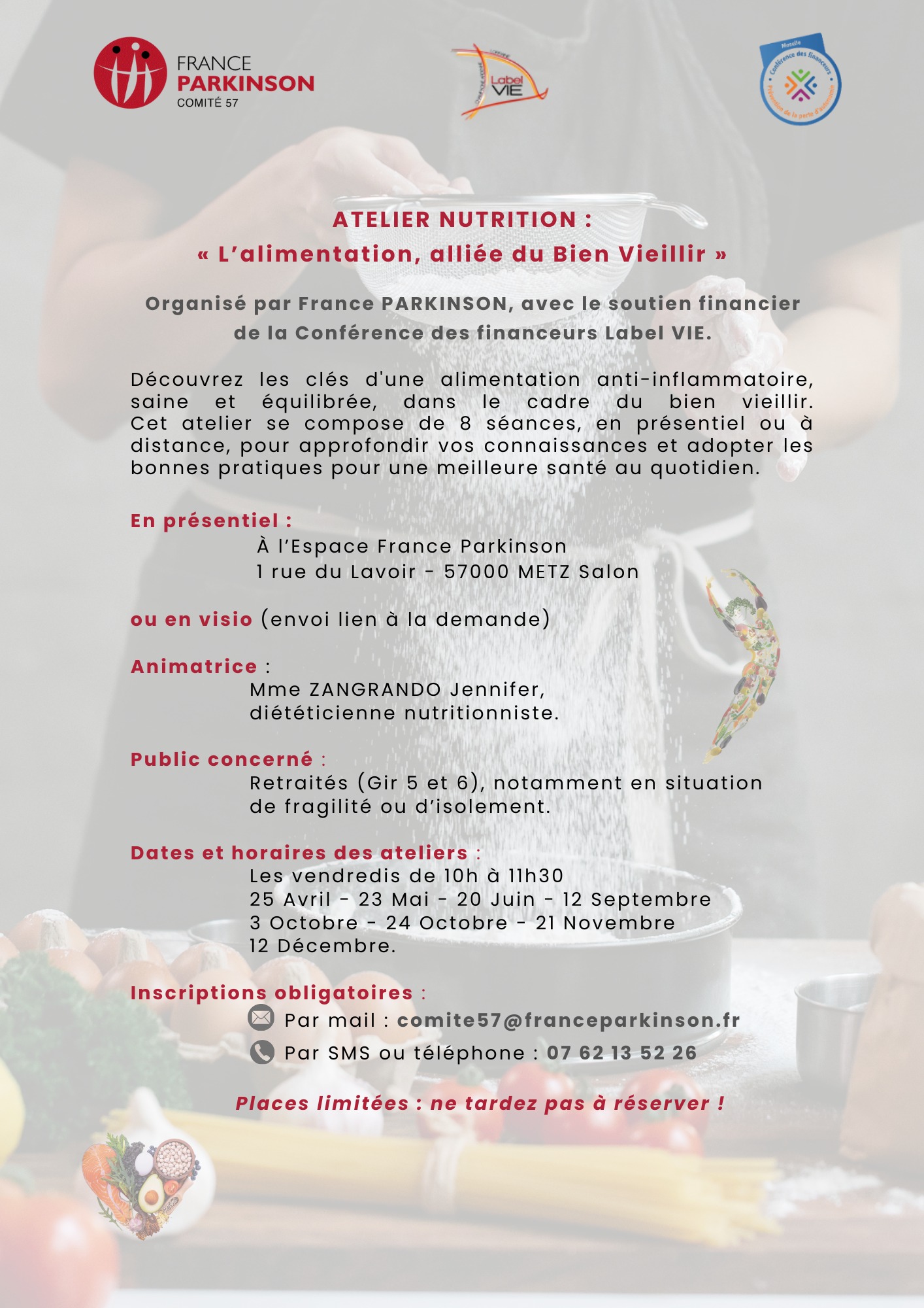 Inscriptions obligatoires : Par mail: comite57@franceparkinson.fr, par SMS