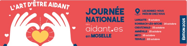 Nous vous invitons à participer à la Journée Nationale des Aidants qui a lieu dans toute la Moselle. C’est l’occasion de montrer notre soutien et notre reconnaissance à toutes les personnes qui accompagnent un proche malade, en situation de handicap ou en perte d’autonomie.