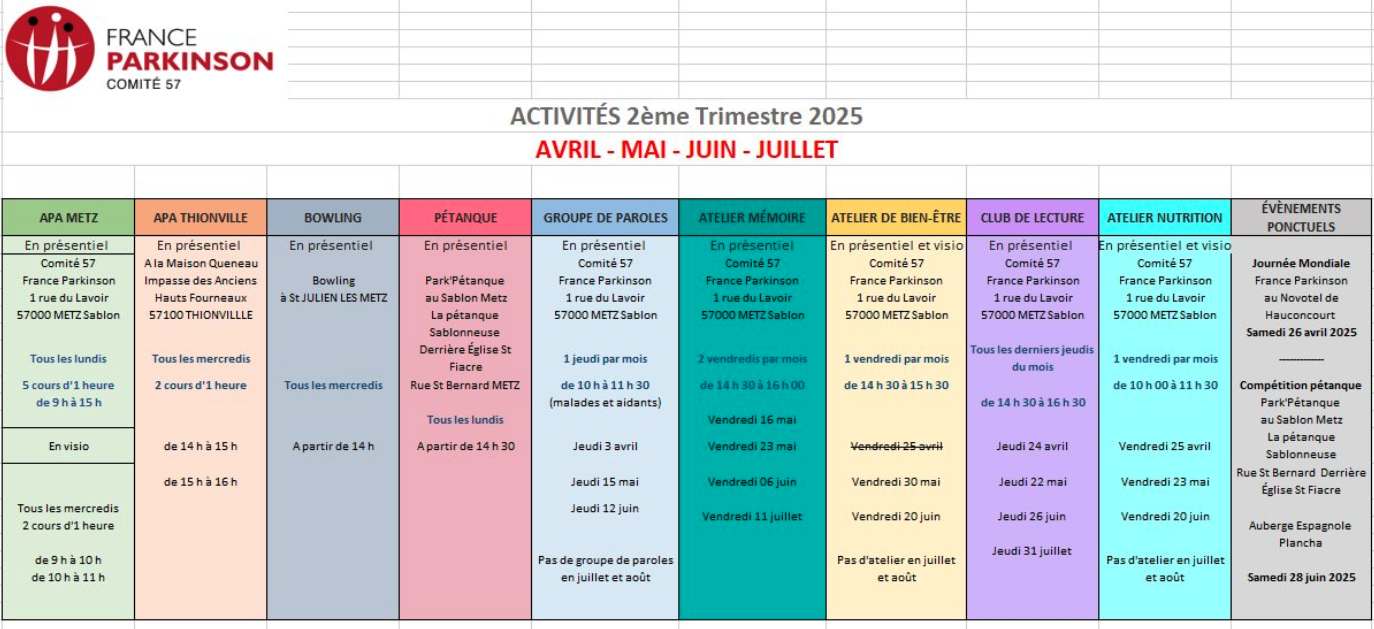 Planning 2ème Trimestre Planning 2ème Trimestre Accueil » Événements » Planning 2ème Trimestre ACTIVITÉS 2ème Trimestre 2025 AVRIL – MAI – JUIN Revenir à la liste