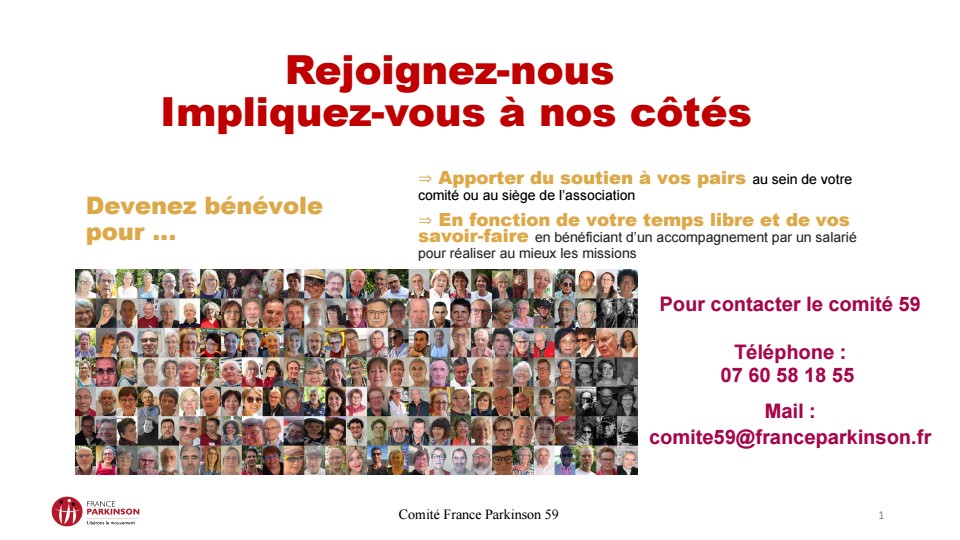 Contact : 07 60 58 18 55 ou comite59@franceparkinson.fr