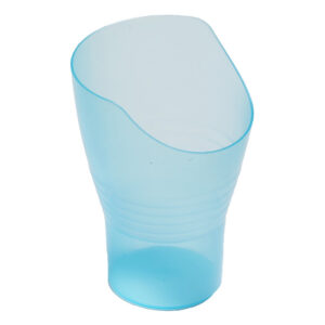 | Verre à découpe nasale. (recherchez ce terme sur internet). Grâce à la découpe nasale, plus besoin de pencher la tête en arrière au fur et à mesure que le verre se vide et éviter ainsi des fausses routes, à la place c’est le verre qui se soulève jusqu’à le vider. |