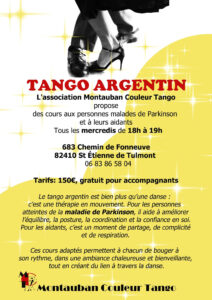 C’est pourquoi, Montauban Couleur Tango nous propose de donner des cours adaptés tous les mercredis de 18 h à 19 h, à St Etienne de Tulmont (683 chemin de Fonneuve).