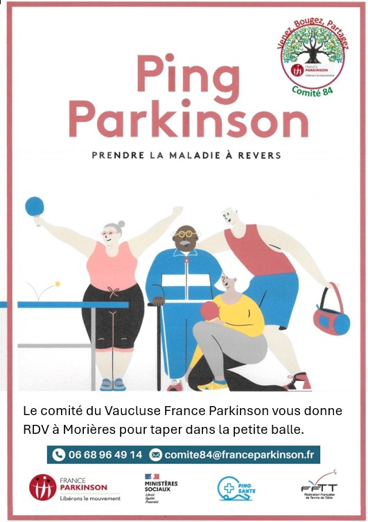 Depuis septembre 2024 le comité 84 et le club de Tennis de Table de Morières proposent le « Ping Parkinson ». Les grands symptômes de la maladie sont la lenteur, la raideur, le tremblement, l’ensemble de ces symptômes fait que les éléments de coordination sont atteints. Le Ping Parkinson permet d’améliorer un certain nombre de ces symptômes d’une façon assez significative, et faire parti d’un club c’est recréer du lien social pour des personnes qui parfois le perde.
